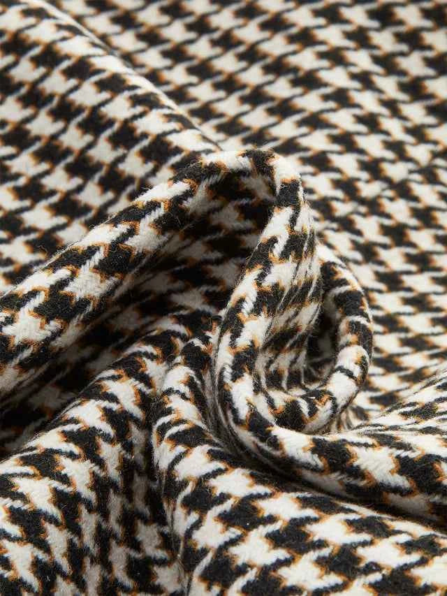 Du ziehst diesen Hahnentritt Blazer mit Gürtel an – das klassische Schwarz-Weiß-Muster sorgt sofort für Stil, während der Gürtel deine Taille betont und eine feminine Silhouette schafft. Die offene Front und der lockere Schnitt bieten Komfort und machen den Blazer vielseitig kombinierbar – perfekt fürs Büro oder den City-Look.