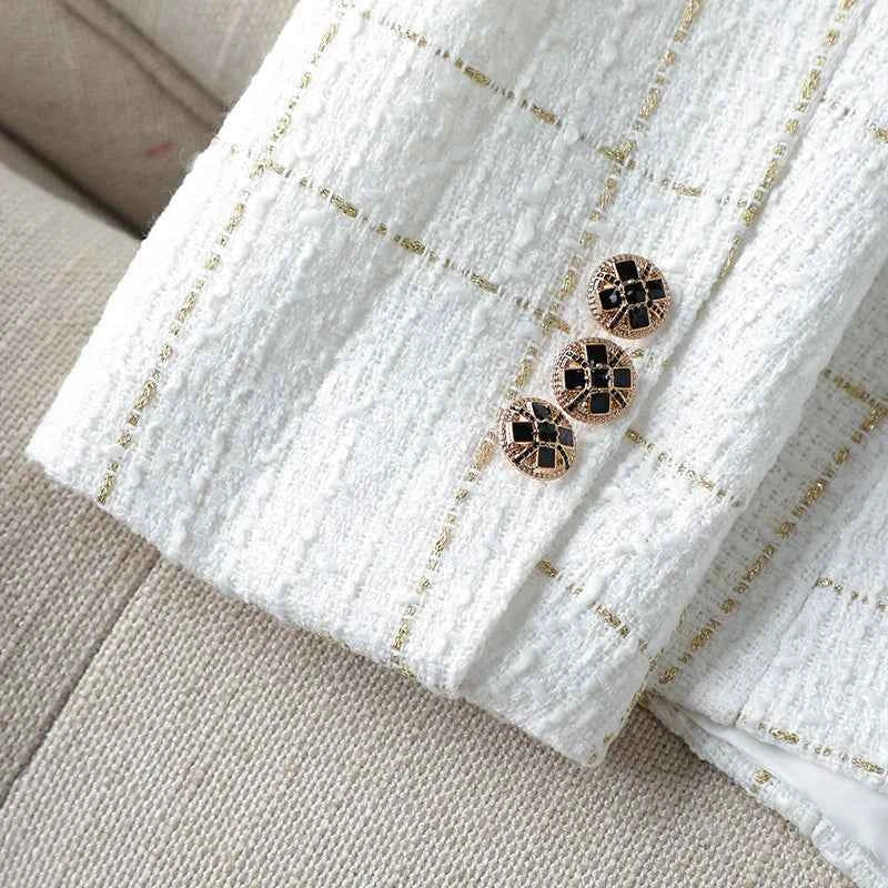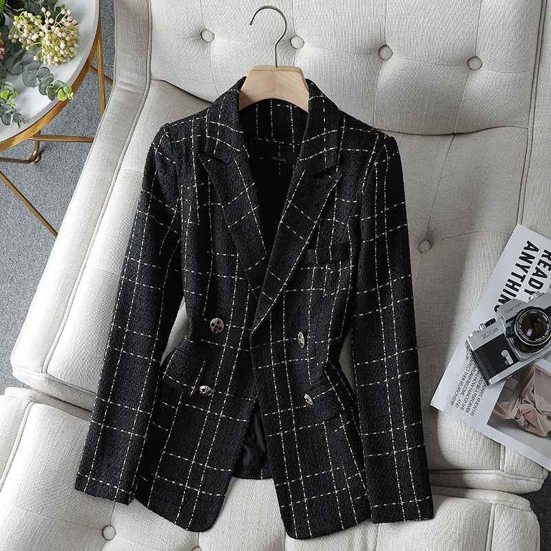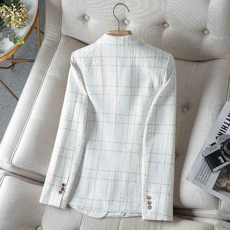 Du trägst diesen karierten Blazer – das klassische Muster verleiht deinem Outfit sofort Eleganz und Struktur. Ob im Büro, zur Jeans oder kombiniert mit einem Kleid, er bringt Stil und Selbstbewusstsein in jeden Look.