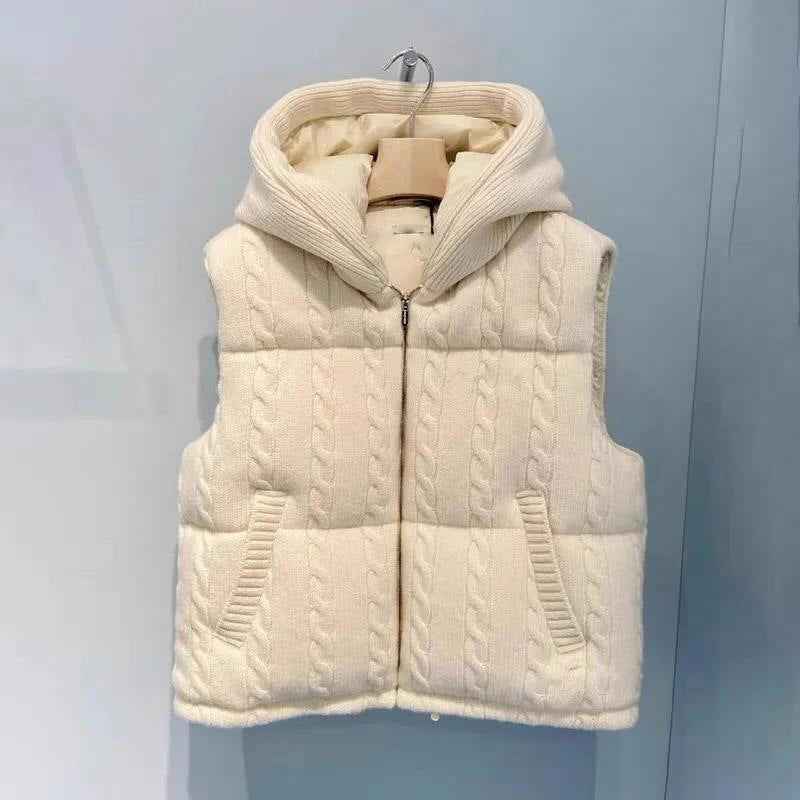 Design: gesteppte Weste mit Kapuze und Zopfmuster, modern und stilvoll