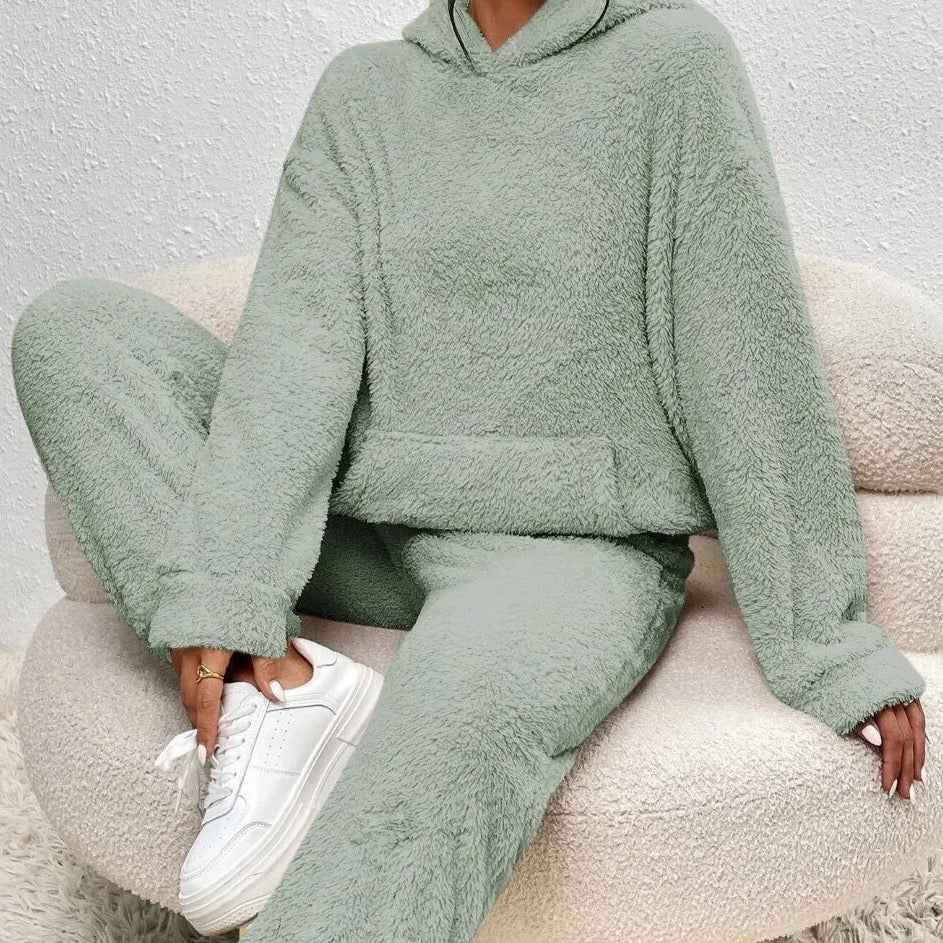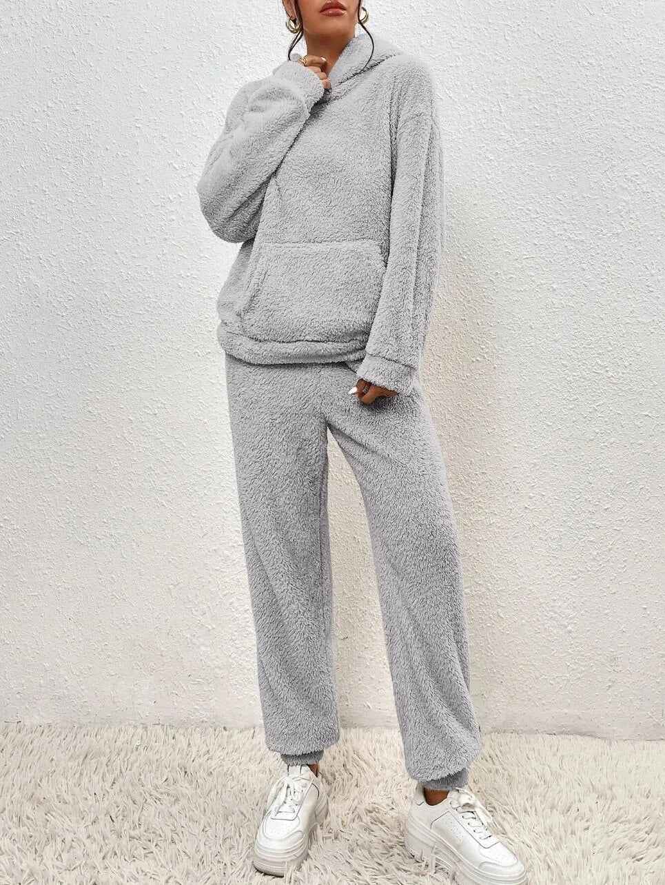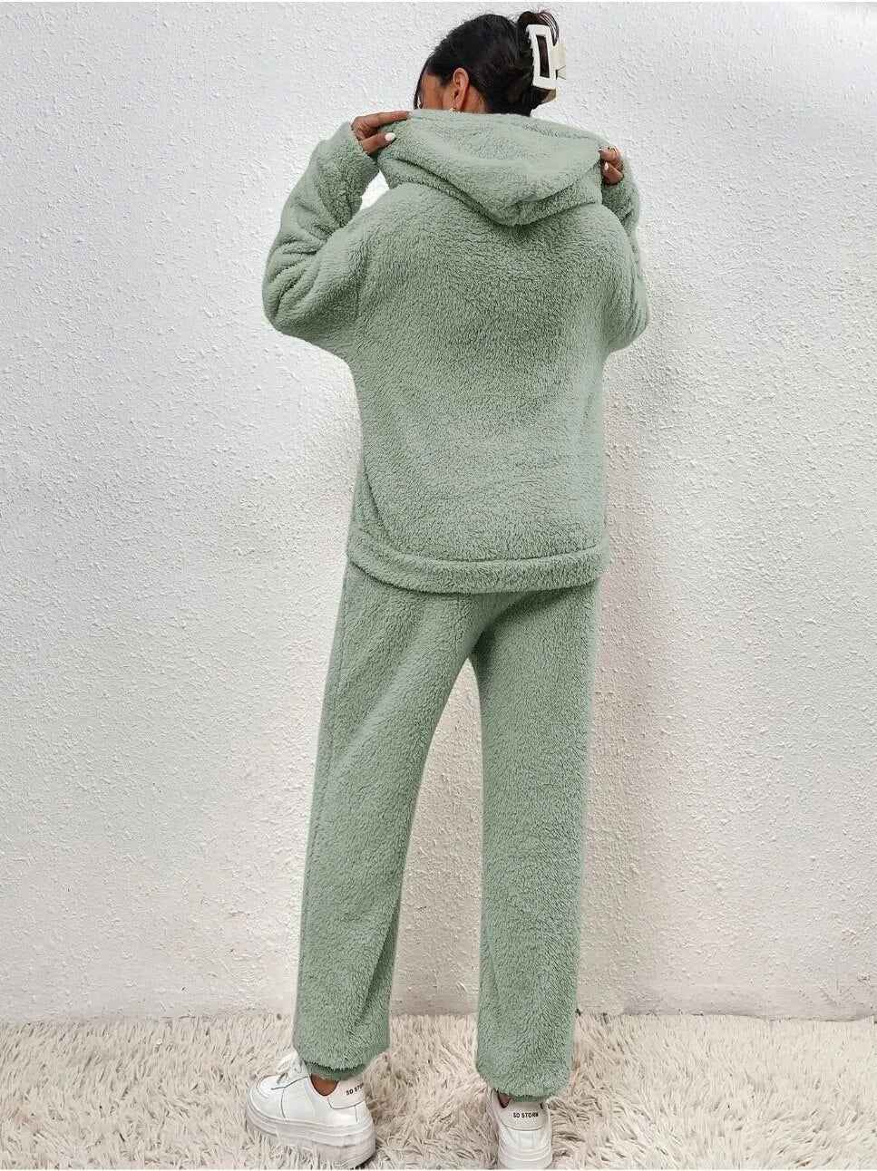 Design: zweiteiliges Set mit Kapuzenpullover und passender Hose im Teddy-Look – kuschelig & warm