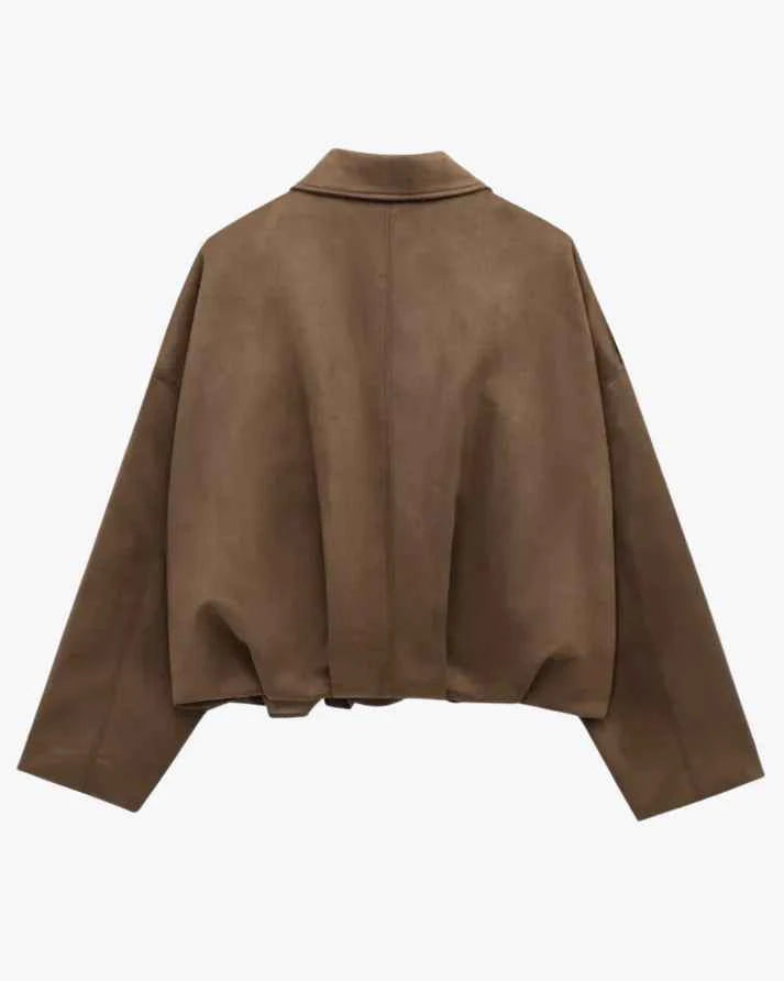 Du trägst diese Oversize Jacke – der lockere Schnitt schenkt dir eine moderne, entspannte Silhouette, während das klare Design vielseitig kombinierbar bleibt. Ob mit Jeans, Kleid oder Rock – diese Jacke verleiht deinem Look einen lässigen und zugleich stilvollen Charakter.