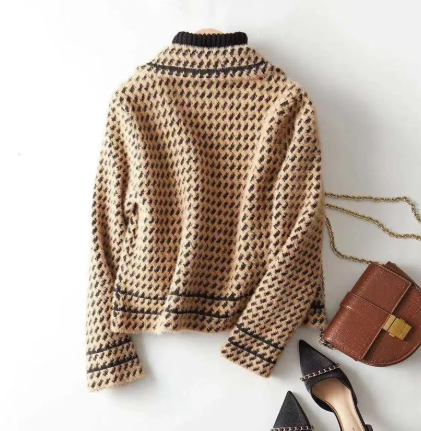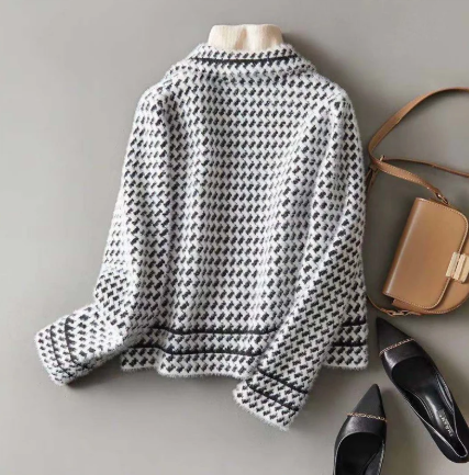 Ein herbstlicher Abend: du trägst diese Strickjacke und spürst sofort Wärme, Stil und Struktur. Diese Damen Strick Jacke mit Hahnentritt-Muster verleiht deinem Look klassischen Chic mit modernem Twist.