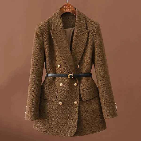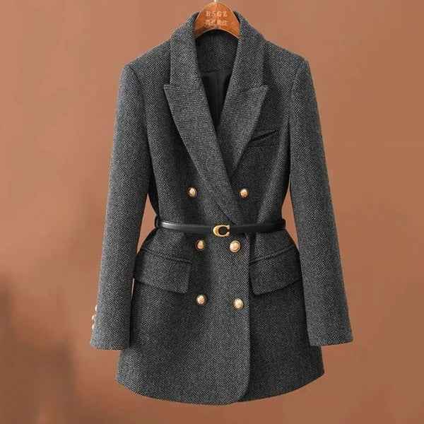 Du ziehst diesen Fischgrat-Blazer an und dein Look wirkt sofort gepflegt – klare Linien, dezentes Muster und müheloses Kombinieren mit Shirt, Strick oder Kleid.